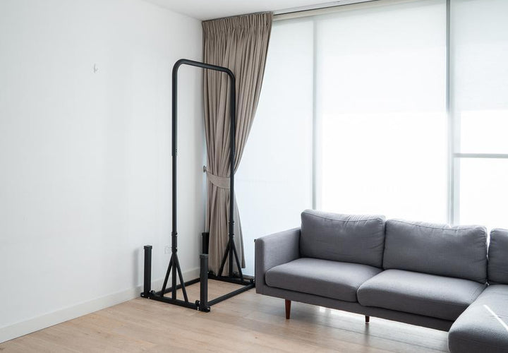 Big Bar ma wysokość 205 cm, co pozwala na wykonywanie ćwiczeń z martwego ciągu. Lekkie, składane nogi zapewniają kompaktowe przechowywanie, a tajemnicza wysokość 112 cm do treningu muscle-up.